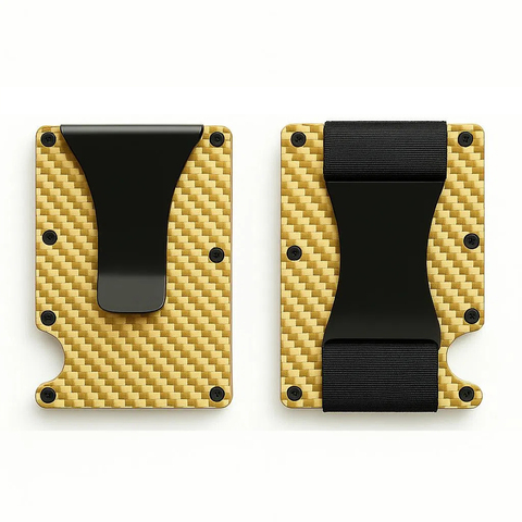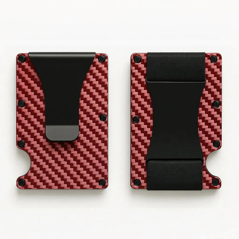 Erkek Minimalist ince karbon Fiber cüzdan RFID engelleme Metal kart tutucu elastik kayış para klip itin açık özel Logo düşük adedi